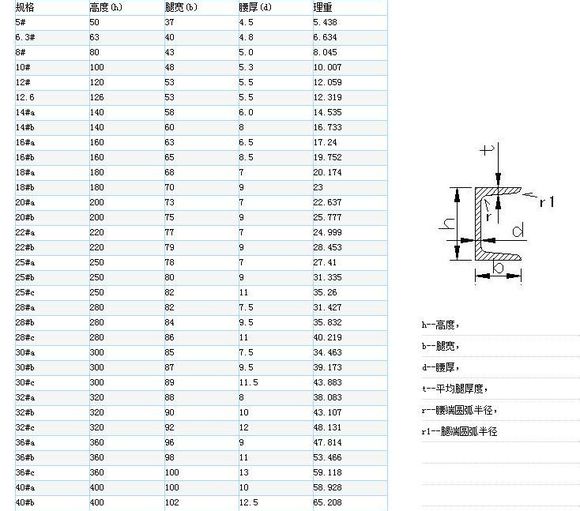 槽鋼是截麵為凹槽形的長(zhǎng)條鋼材。截麵形狀為槽(cáo)形(xíng)的型鋼。槽鋼屬建造用和機械用碳素結構鋼,是複雜斷麵(miàn)的型鋼鋼材(cái),其斷麵形(xíng)狀為凹槽形。槽(cáo)鋼主要用於(yú)建(jiàn)築(zhù)結構、幕牆工程、機械設備和(hé)車輛製造等(děng)。在使用中要求其具(jù)有(yǒu)較好的焊接、鉚接性能及綜合機械性能。 產(chǎn)槽鋼的原料鋼坯為含(hán)碳量不超過0.25%的碳結鋼(gāng)或低合金鋼鋼坯。成品槽鋼經熱加工成形、正火或熱軋狀態交貨。其(qí)規格以腰(yāo)高(h)*腿寬(b)*腰厚(d)的毫米數表示,如100*48*5.3,表示腰(yāo)高為100毫米,腿寬為48毫米,腰厚(hòu)為5.3毫米的槽鋼,或稱10#槽鋼。腰高相(xiàng)同的槽鋼,如有幾(jǐ)種不同的腿寬和腰厚(hòu)也需在型號右邊(biān)加a b c 予以區別,如25#a 25#b 25#c等。槽鋼分普通槽鋼和輕型(xíng)槽鋼。熱軋普(pǔ)通槽鋼的規格為5-40#。經供需(xū)雙方協議供應的熱軋變通槽鋼規格為(wéi)6.5-30#。槽鋼主要用於建築結構、車輛製造、其它工業結構和固定盤櫃等,槽鋼還常(cháng)常(cháng)和工字(zì)鋼配合使用。